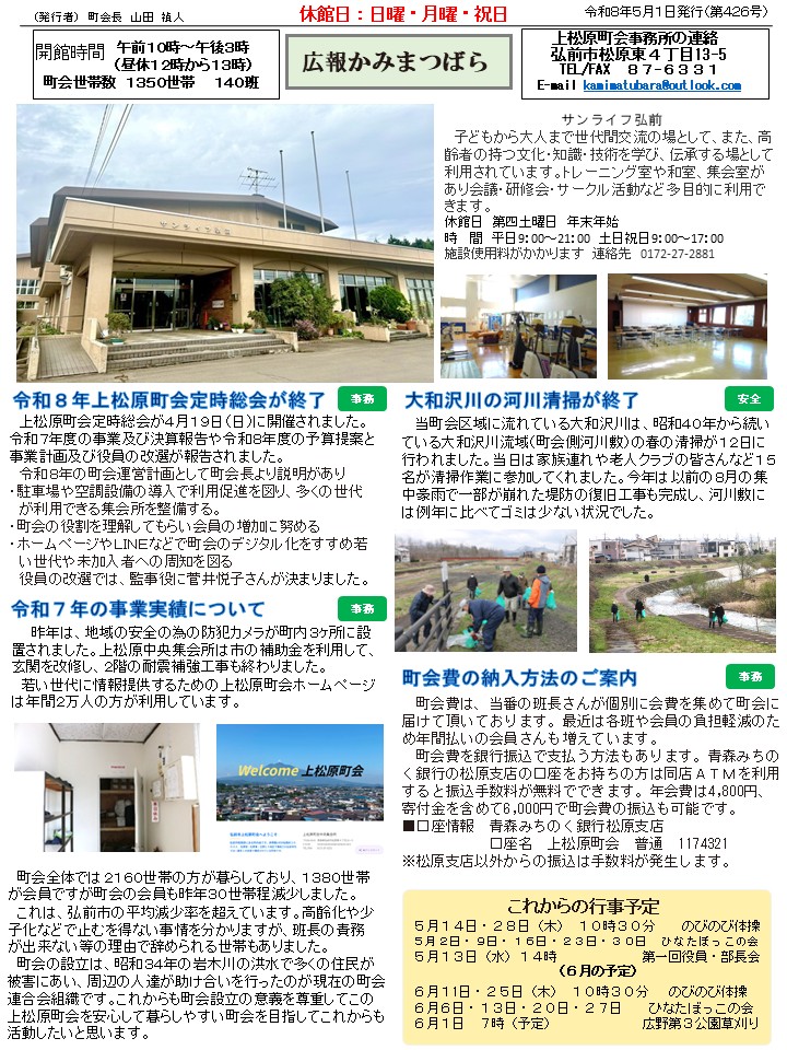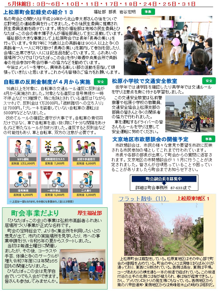 今月から始まるプラスチックゴミの分別回収についてお知らせしています。この他、集会所のギャラリーで開催している「田中功絵画展」についても掲載しています。