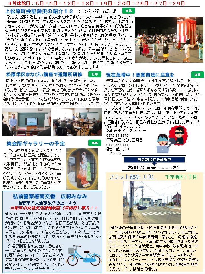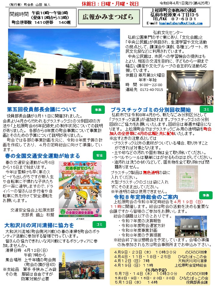 今月から始まるプラスチックゴミの分別回収についてお知らせしています。この他、集会所のギャラリーで開催している「田中功絵画展」についても掲載しています。