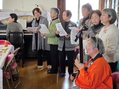 上松原町会の新年祝賀会が17日に行われました。当日は町会の会員の方の他、周辺地域の町会長や学校、社会福祉の関係者など多くの参加者で賑いました。会場では、ひなたぼっこの会員による歌や踊りが披露されました。